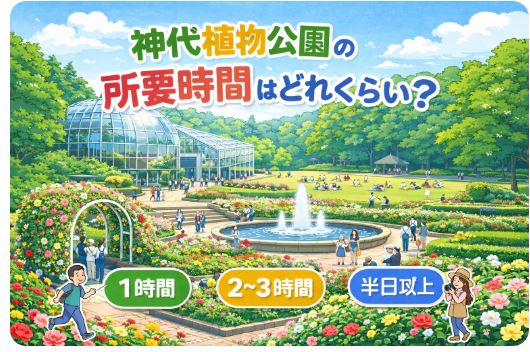 神代植物公園の所要時間は、目的や回り方によって大きく変わります。短時間の1時間コースから、半日以上のゆったり滞在まで、幅広い楽しみ方ができるのが魅力です。